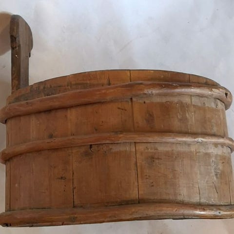 Håndlaget, gammel, antikk mjølkering, som ble brukt til å melke i. Den var stødig og lett å melke i.