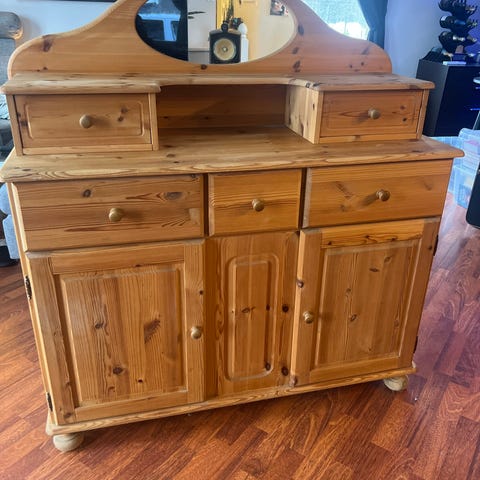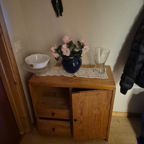 Stor kommode gis bort som den er da vi har kjøpt en ny. Dørene må ordnes for å være helt i orden. Må hentes uten bistand da jeg sitter i rullestol og ikke kan hjelpe! Fint om den kan hentes søndag 25. januar eller mandag 26. januar. Dere må selv demontere ved behov.