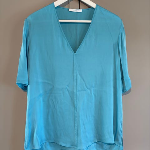 Hugo Boss bukse i blått mønster, laget av silkemateriale. Størrelse 44 (vil si den er mer en 42 i str). Buksen har lommer og en løs passform.