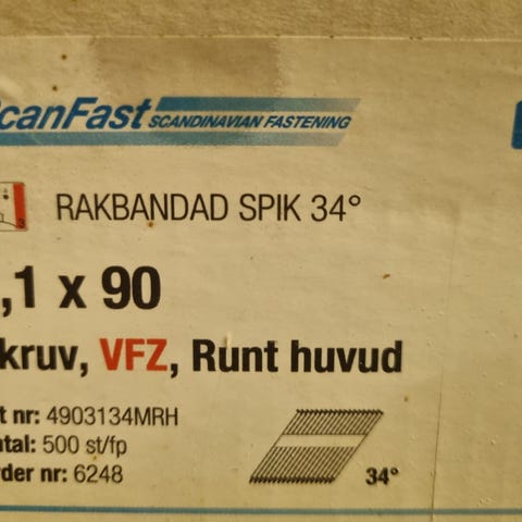 Pistolspiker på band. 0 grader 1950 stk. 2.8 * 75mm