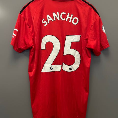 Adidas Manchester United fotballtrøyer i rød farge, størrelse 9-10 år (140 cm). Trøyene har klubbens emblem og TeamViewer-logo.