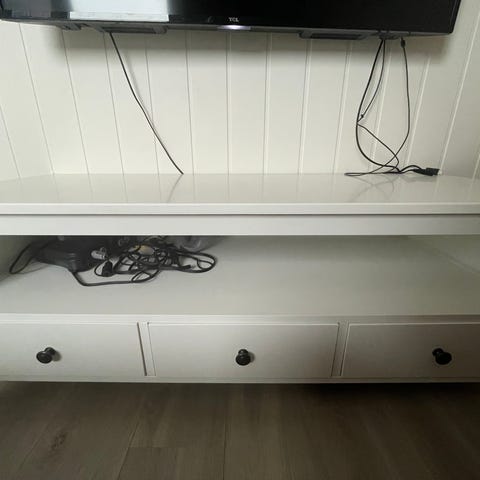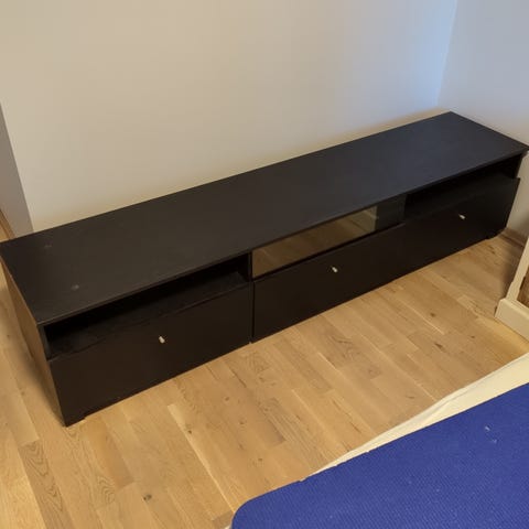 - Tv benk gis bort. Den har stått på et lekerom, så den trenger at dørene strammes. Ellers ingen synlige bruksmerker. (Bilde fra IKEA for målene)