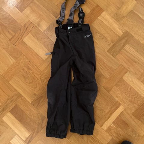 Reflex utebukse i størrelse 122, unisex design. Laget av polyester materiale i grå-blå farge. Noe slitt nederst, se bildene. Elles ingen hull eller andre mangler.