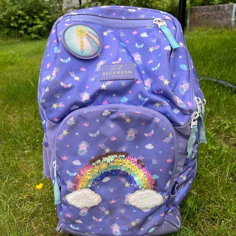 Moomin ryggsekk i rosa farge, designet for barn. Sekken har justerbare skulderstropper og flere lommer for oppbevaring, inkludert en frontlomme med glidelås. Passer til daglig bruk og lettere oppbevaring.