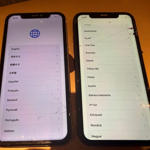 Apple iPhone XS mobiltelefon med 64 GB lagringskapasitet i gullfarge. Skjermen har noen riper/knust og den funker ikke. Går ikke ann å trykke på skjerm. Kan evt prøves å bytte ut eller bruke delene.