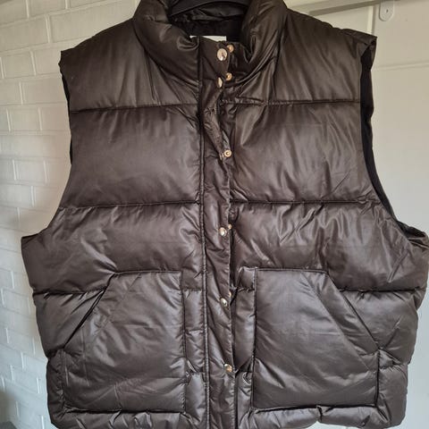 Jeg selger min olivengrønne vatterte vest fra LT Clothing. Vesten har glidelås i front og i sidene, slik at du kan justere åpning etter behov.