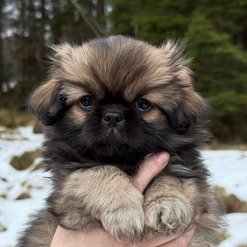 Hundene har mye energi og elsker tur, og de trenger et hjem som kan gi dem både aktivitet og oppmerksomhet. De selges til noen som kjenner til rasen og vet hva det innebærer å ha tibetansk spaniel. Prisen er 18 000 kroner for begge samlet.
