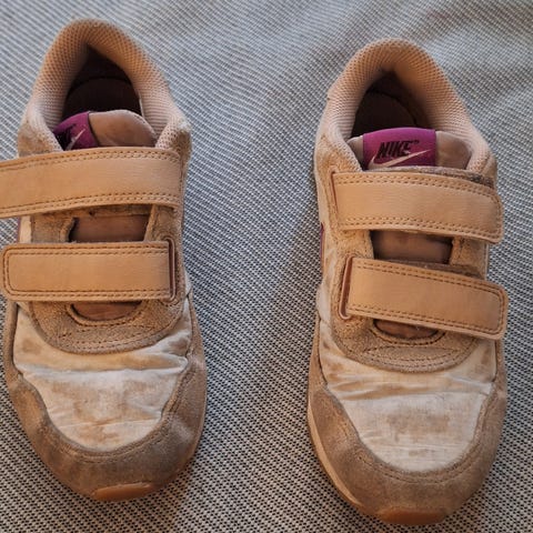 Skoene er grå og har borrelås og snøring for enkel tilpasning. Lite brukt.