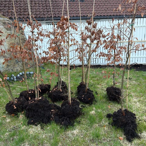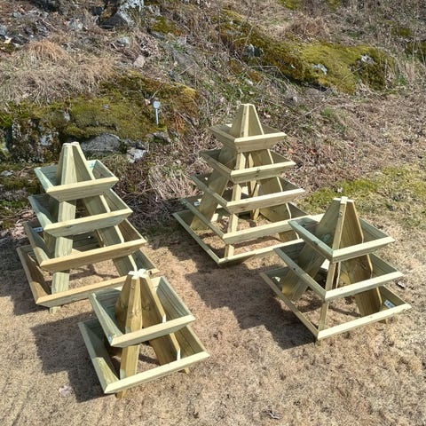 Granstubber med greiner, som kan brukes som pynt til halloween.