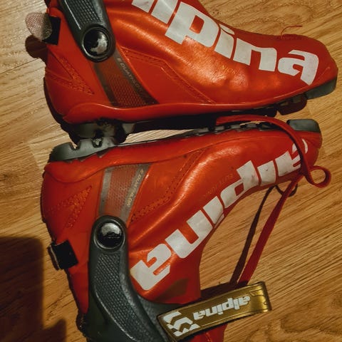 Alpina skisko til skate. Er en liten rift i skoen som jeg har teipet over. Skoene fungerer som de skal