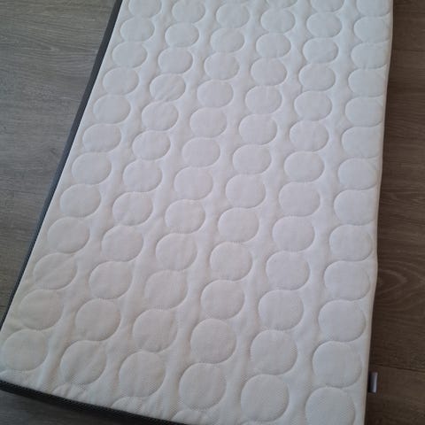 Godt brukt, men i god stand. Alt fungerer. Malt i lys grå. Var opprinnelig hvit. Sengebunn kan monteres i to ulike høyder, og den ene langsiden kan senkes. Kjøpt på Brio for en del år siden. 60 x 120. Madrass og Sengekant kan medfølge om ønskelig.