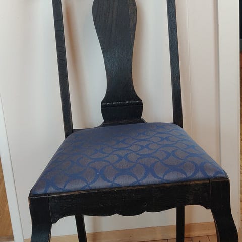 Fire spisestoler. Trenger nok litt maling, men fine og robuste stoler i tre.