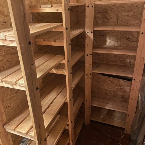 Hyllesystem fra Obs Bygg. Fire hyller. Se informasjon på OBS sine nettsider.