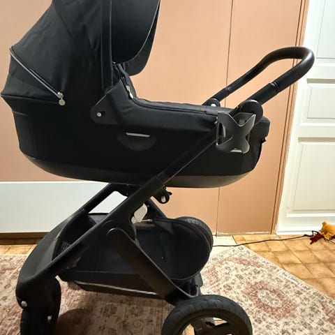 Meget flott barnevogn fra Stokke som er godt tatt vare på! Alltid oppbevart innendørs. Kjøpt ny og brukt av ett barn til 1,5 års-alder. Følger med spesialtilpasset vognpose, stelleveske, regntrekk og myggnetting. Må hentes på Sortland.