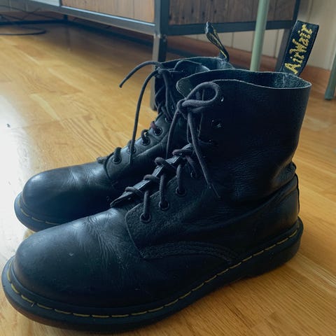 Dr. Martens støvler i størrelse 41. Støvlene er svarte og laget av skinn. Ikke foret.