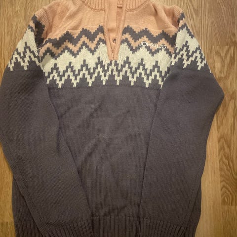 Johaug genser i 50% ull, 30% polyamide,20% acryl,størrelse S for dame. Genseren har svart farge med mønsterdetaljer. Laget i ullmateriale som gir varme og komfort. Den var en gave, men den er dessverre for liten til meg.