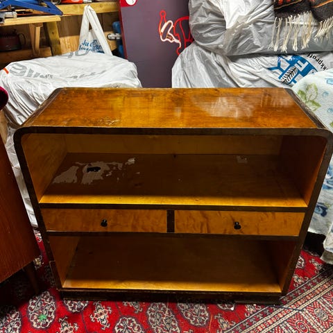 Kommoden er stabil og hel, med skuffer som glir fint. Original lås og nøkkel fungerer, og innvendig er den ren og velholdt.