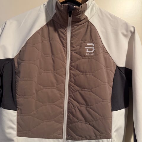 Swix Anorakk for kvinner i størrelse L. Jakken er rød og designet for langrenn. Den har hette og glidelås i front, med justerbare mansjetter og en lomme på brystet.