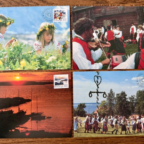Frimerker med motiv av stavkirker stemplet 27.11.1993