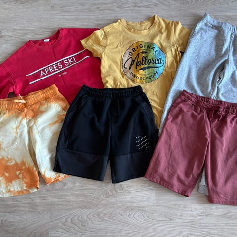 Klespakke med 6 bukser og 4 shorts str 13-14 år (158-164).