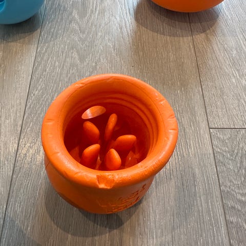 Trenings ball/Leke som lager lyd når den beveger seg. Kan putte hunde godteri oppi som en god trening for hunden din :)