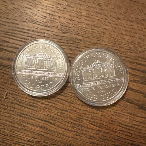 Investeringssølv sølv. sølvmynter, gull, gullmynter, investering, oz, austria, philharmonic, silver, gold, coin