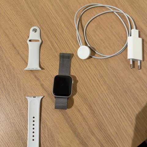 Ca 5 år gammel serie 5 cellular, 40 mm. Den har noen småstriper i glasset og må lades daglig (ca 70 % batterikapasitet). Selger også en mengde bånd. Totalpris 1500 kr, eller spør om enkeltvis, 50 kr- 200 kr.