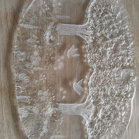 Flott håndlaget fat og seks bordskånere fra Santorini i Hellas. Perfekt til valentinsdagen.