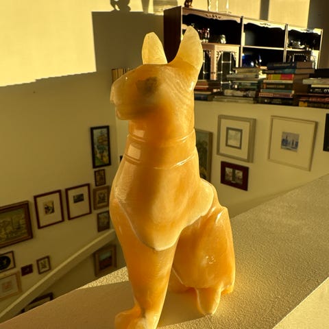 2 dekorfigurer i stein – dyremotiv (alabast/onyx)