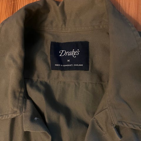 Pent brukt, klassisk Oxford button Down-skjorte fra Drake’s. Tilhører den tidligere Easyday-kolleksjonen som var litt smalere enn de som lages i dag, og uten alle detaljer som de har nå, som hempe i nakken og egen penn-del på brystlommen.