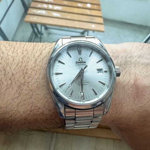 Vurderer å selge min Omega Seamaster Aqua Terra 150M Co-Axial (41,5 mm) – en klassisk og sporty “allround”-klokke som passer like godt til hverdag som til penbruk.