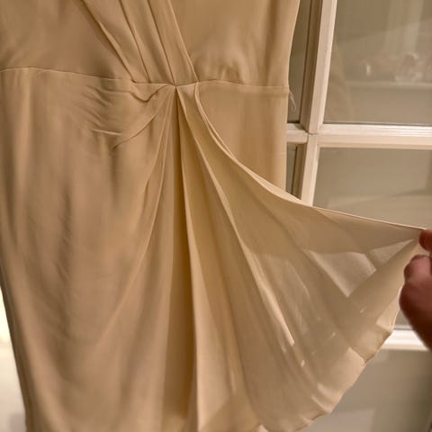 Michael Kors festkjole i størrelse S, beige farge og laget av polyester. Kjolen har en tettsittende passform og er egnet for formelle anledninger.