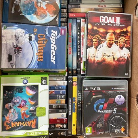 Selger en variert samling med spill og filmer etter opprydding. Her er det mange godbiter for både spillentusiaster og filmelskere.