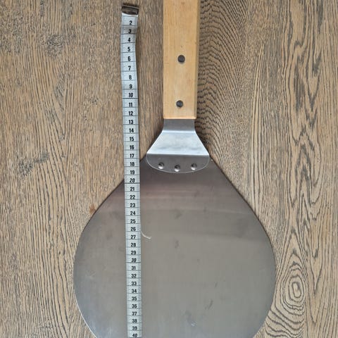 Spade til pizza med trehåndtak. Lengde: 66cm. Bredde: 30,5 cm