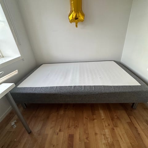 Selges fordi jeg skal flytte til en leilighet hvor det føler med seng. Har alltid brukt madrassbeskytter og laken, i tillegg til å lufte den regelmessig. Til sammen er den kun brukt i 5 måneder. Har ingen merker og ser så å si ny ut.