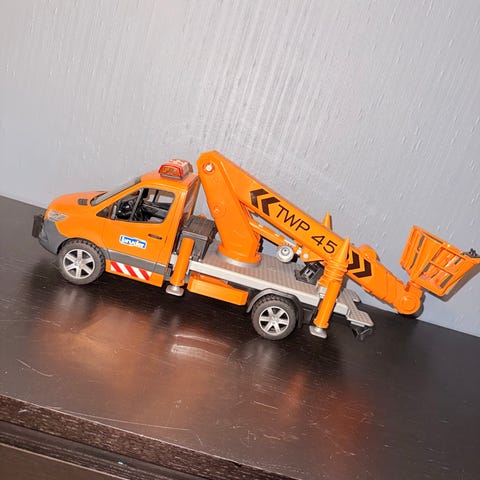 Firkantpresse tilbehør til traktorer fra Bruder. Følger med to firkantete «halmballer». Litt knekt framme i et feste og et feste bak hvor halmballene kommer ut. Ingenting å si for bruken. Nypris lekekassen: 367,-.