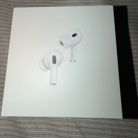 Apple AirPods Pro 2 trådløse hodetelefoner med aktiv støydemping og ladeetui. Ferdig renset, oppdatert og tilbakestillt til standard innstillinger, klar for ny eier. Følger med alt orginalt tilbehør og ubrukte ørepropper i størrelse XS, S og L.