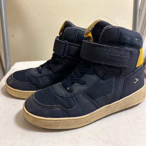 Asics gymsko/ joggesko i størrelse 38. Skoene er mørk blå med detaljer i neonfarger. Enkle å ta av/ på. Pent brukte.