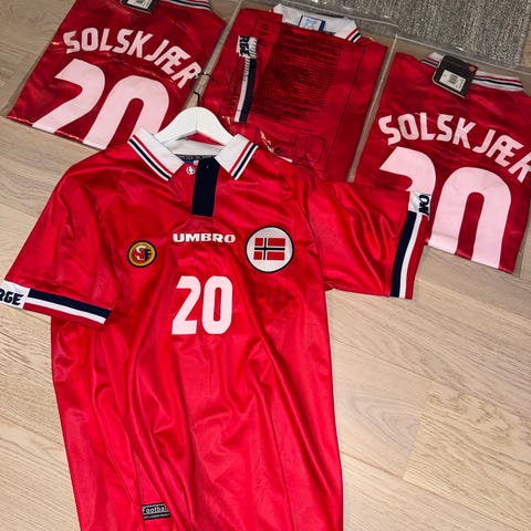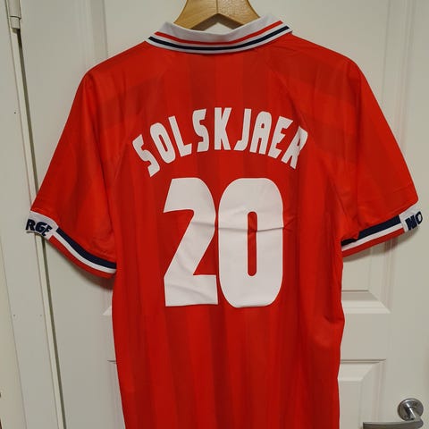 Flott drakt fra 96, med Solskjær. Str L. Flott tilstand.
