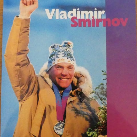 Samlemappe fra Den Norske Frimerkeklubb med en rekke eksotiske OL-merker, FDC og pesialkonvolutter fra Lillehammer og en konvolutt fra Kasakhstan med signaturen til Vladimir Smirnov