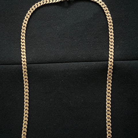 Halskjede for herre i 14 karat gult gull. 29 gram vekt og 60,5cm total lengde. Ca 17 gram fintgull.