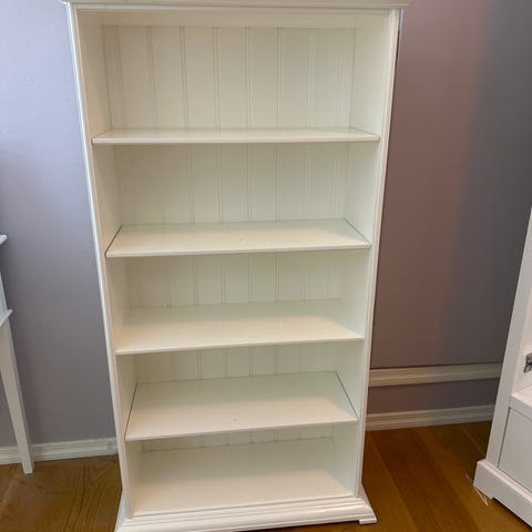 Pent brukt tallerken hylle fra Oliver Furniture. Brukt til å ha bøker i på barnerom.