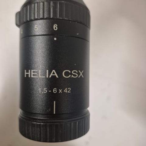 Meget fint kikkertsikte med opplyst retikkel K-dot.