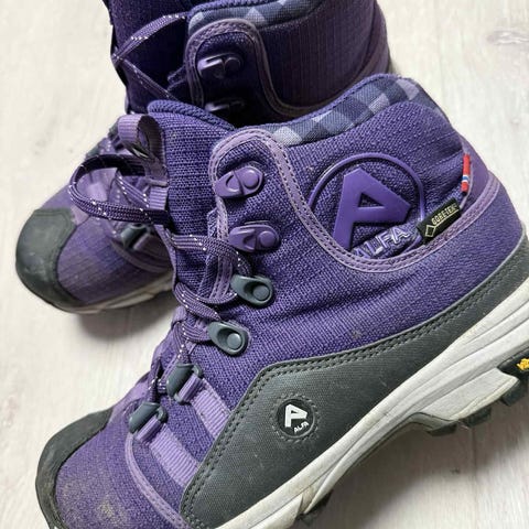Kvalitet fra Norske Alfa. Høy fjellsko i slitesterkt materiale - Gore-Tex vanntett og pustende. Farge: Sort. Str. 41. Slitesterk Vibram såle med godt grep. Ubetydelig brukt av eldre dame, så de er fortsatt i meget bra stand. Kan også sende de med Posten for en grei pris.