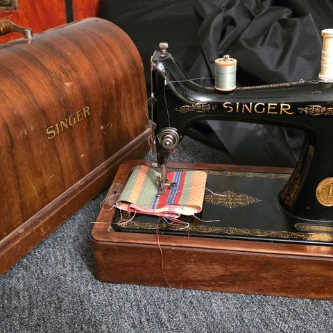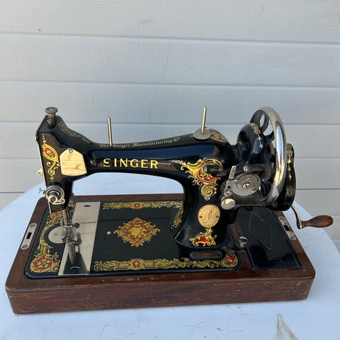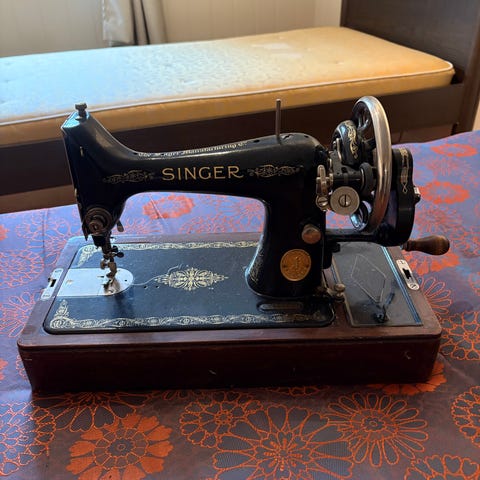Singer symaskin med tilhørende koffert. Tror nesten ikke at den har vært i bruk. Ligger i orginalksse.