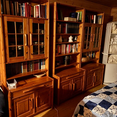 Hylle gis bort, noe merker. Brukt til lagring av garn
