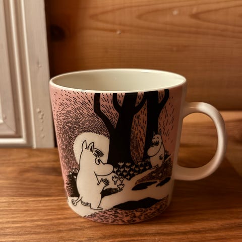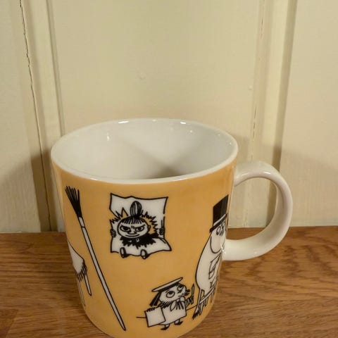 Selger en helt ny mummikopp fra Mummiparken i Japan. Koppen har boks og etikett, men merk at boksen har noen små merker av tape der den åpnes/lukkes (syntes ikke på bildene). Denne selges kun på Mummi-fornøyelsesparken i Japan.
