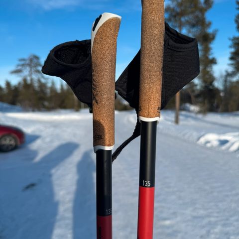 Solide karbon langrenns staver fra Swix som kunn er brukt 2 turer og fremstå som nye. Selges med komfortable Swix triac 3.0 stropper.