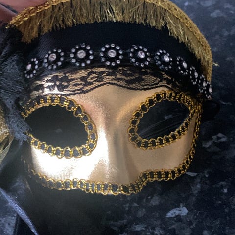 Unisex LED maske med svart base og røde LED-lys som danner mønster på ansiktet. Masken har justerbare stropper for feste og leveres med en kontrollenhet for LED-lysene. Kan brukes til kostymer eller arrangementer som krever ansiktsmaske med lys.