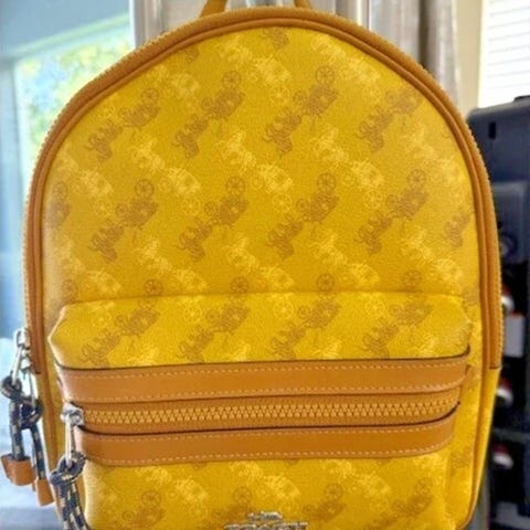 Coach Star Wars ryggsekk laget av kunstlær, designet for unisex bruk. Ryggsekken har et mønster med Star Wars-logo og er utstyrt med glidelås på frontlommen.